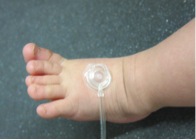 The infants received light taps to their hands and feet, meant to trigger activity in the touch ("somatosensory”) areas of their brains. The taps came from an inflatable circular membrane – like a pea-sized balloon – gently placed against their skin and attached to a 3-millimeter wide tubing through which a puff of air could be delivered.