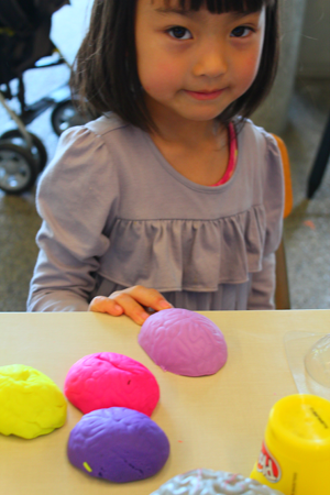 Exhibit 1 included a touch screen investigating how infant brains learn language. Exhibit 2 involved a live interaction showing how babies learn from the people in their environment. Exhibit 3 gave young children unique ways 'play' with their brains: