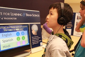Students from schools across the Pacific Northwest came to learn from different units at UW about different facets of the brain. I-LABS interactive booths use a touch-screen display and "game" with researchers to help children discover the uniqueness of how their experience shapes their perception.