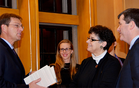 Photo caption: Prime Minister of the Republic of Slovenia Dr. Miro Cerar, Dr. Naja Ferjan Ramirez, UW President Ana Mari Cauce, and UW Vice-Provost for Global Affairs Jeffrey Riedinger. Photos by Piotr and Marija Horoszowski.