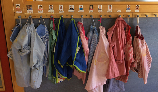 - The coat rack is labeled with each child's name and picture, so that the kids can learn to identify their own things as a way of building autonomy.