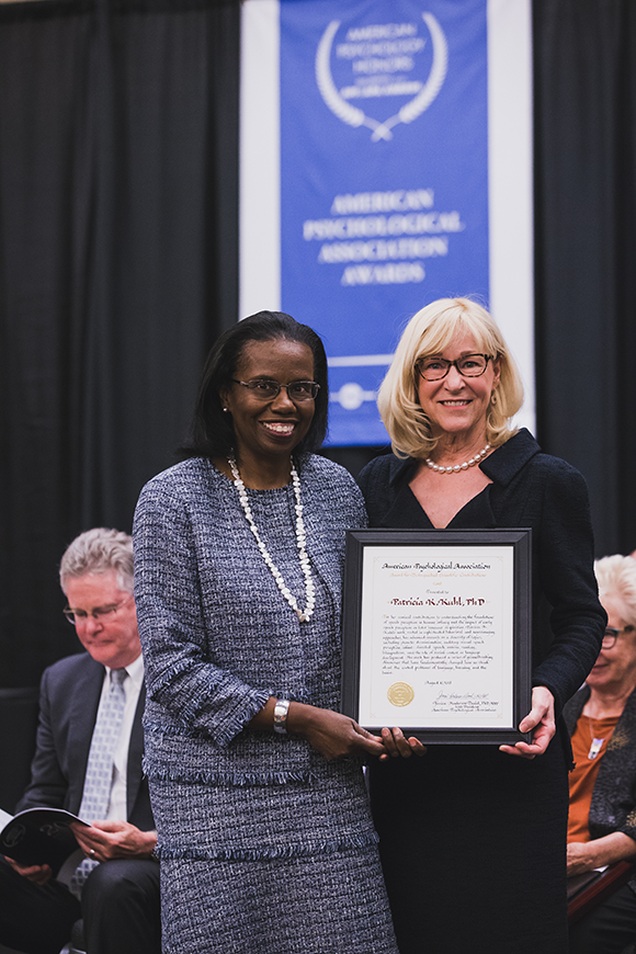 The award was presented by APA president Dr. Jessica Henderson Daniel at the APA convention in August 2018. Kuhl's biography is now published online in the journal American Psychologist.