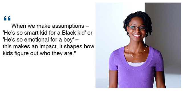 "Children are constantly taking in information from people around them, and the things we say and don't say make an impact on how they figure out where they fit in the world," Rogers said. "When we make assumptions – 'He's so smart kid for a Black kid' or 'He's so emotional for a boy' – this makes an impact, it shapes how kids figure out who they are."