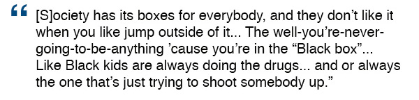 - Are there certain things you're supposed to do just because you're Black/a boy?