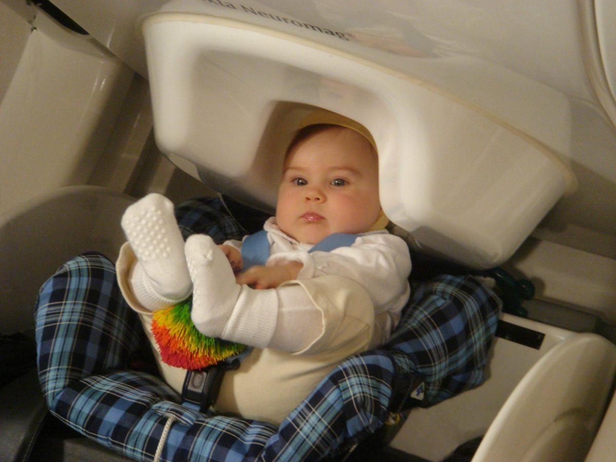 The exquisitely sensitive MEG brain-imaging device can map the mental activity of an infant only a few days old and proves that the mysterious little brains of children are anything but empty.